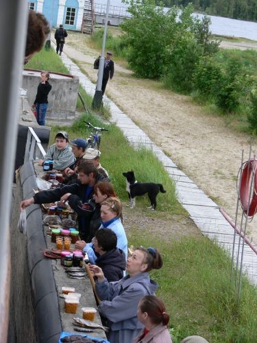 Некоторые шлюзы обселены населением, предлагающим шлюзующимся копченую рыбу неволжских размеров и морошку во всех ипостасях – от свежей до варенья. Ну и грибы, конечно. Сушеные, прошлогодние. Шлюзы, кстати, как известно, являются режимными объектами. Но если на волгобалте их можно фотографировать хоть до усрачки, то на Беломорканале такие вольности не дозволяются. По пришлюзовой территории ходят охранники с автоматами и вежливо, но убедительно советуют турикам засунуть камеры и аппараты поглубже. Населенные пункты, сопровождающие шлюзы, состоят из нескольких жилых и нежилых построек убогого вида, обильно обнесенных колючей проволокой. Среди торгующего на шлюзах населения много детей. То есть – в основном это и есть дети под присмотром какой-нибудь бабульки.