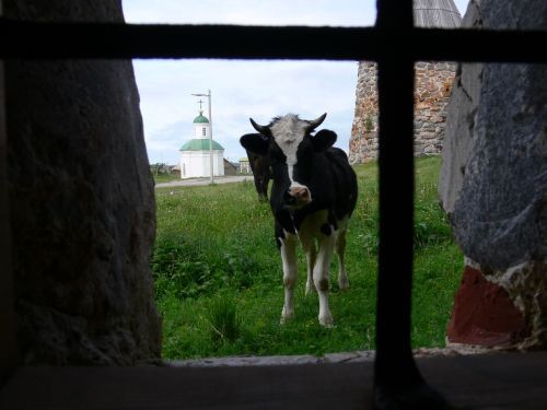 Кирилло-Белозерский монастырь являет собою, по сути, крепость. Имеет толстые каменные стены с отверстиями, чтобы через них пулять в сторону врага стрелой или ядром, а также лить смолу на головы неверных. Правда, кажется, обители сией так и не удалось ощутить подъема уровня адреналина в ее защитниках, случающегося от незапланированной осады и вражьего приступа. Короче, случилось так, что эти неприступные стены так и не познали вожделенного экстаза обороны. А значит, что все строилось зря. Зря – в функциональном смысле, но отнюдь не в смысле впечатления, производимого всей мощою построек на современного урбанизированного, не отягощенного суровой средневековой заботой туриста. А в функциональном смысле можно было бы ограничиться и деревянной оградкой. А то и просто надписью, типа, «Монастырь. Пошли все на фиг». И подпись - Кирилл. И было бы вполне достаточно.