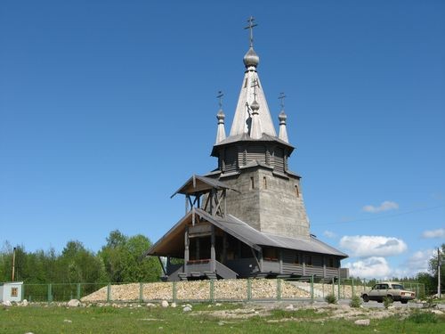 Это часовня, расположенная недалеко от шлюза, разделяющего ББК и Онего. Селение называется Повенец. Некоторые называют её церковью Святителя Николая. Но алтаря там нет. Поэтому - скорее часовня. Построил её какой-то местный бизнесмен в честь своего отца Николая же, который был известным повенецким рыбаком. Так она теперь и стоит...